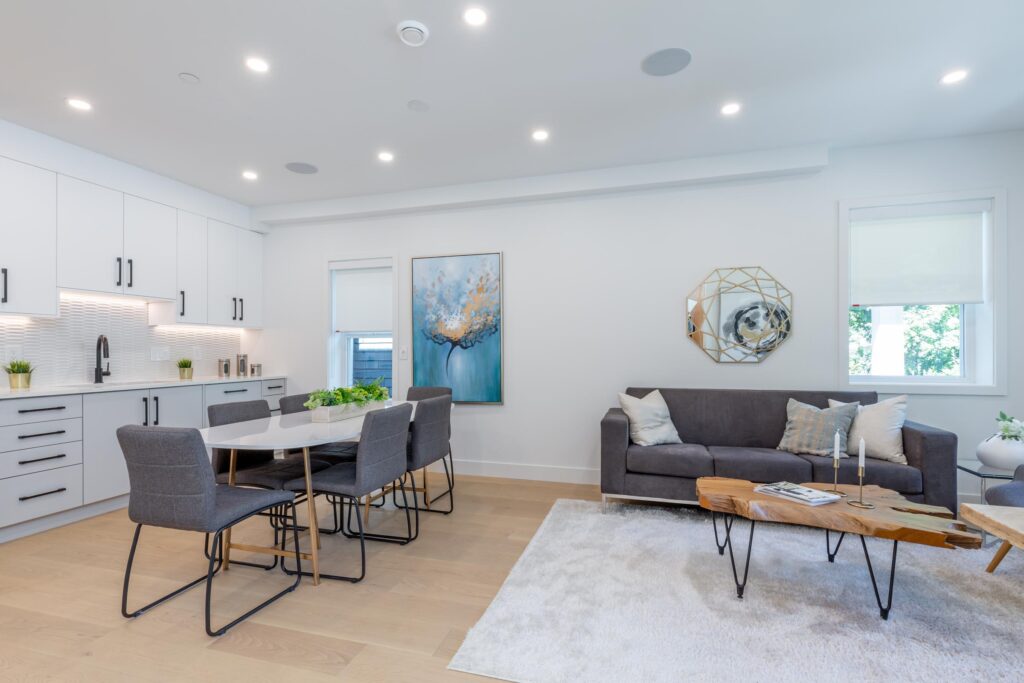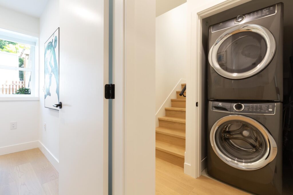 Another stunning ½ duplex by Four Corner Homes. Ideally located on a quiet tree-lined street in the Grandview-Woodlands neighbourhood, this front facing home features 4 bedrooms & 2.5 bathrooms – perfect for your growing family. The well appointed kitchen includes custom cabinets, Fisher & Paykel appliance package & quartz countertops. The in-floor radiant heat & HRV will keep you comfortable. Enjoy the outdoors on the front porch which leads to the fully fenced yard, or retreat upstairs to the upper patio for a glass of wine at the end of the day. Play your favourite music on the surround sound system with bluetooth receiver. Have peace of mind with the security system with video cameras & 2/5/10 New Home Warranty. With in walking distance to Victoria & Commercial Drive.